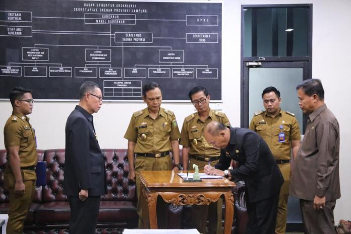 Sebelumnya kedua pejabat yang di lantik ini Ir. Mulyadi Irsan, M.T menjabat Kepala Dinas Pekerjaan Umum dan Penataan Ruang Provinsi Lampung, dan Ir. Edi Yanto, M.Si jabatan menjabat Kepala Dinas Perkebunan dan Peternakan Provinsi Lampung. (Ndi/Bayu)