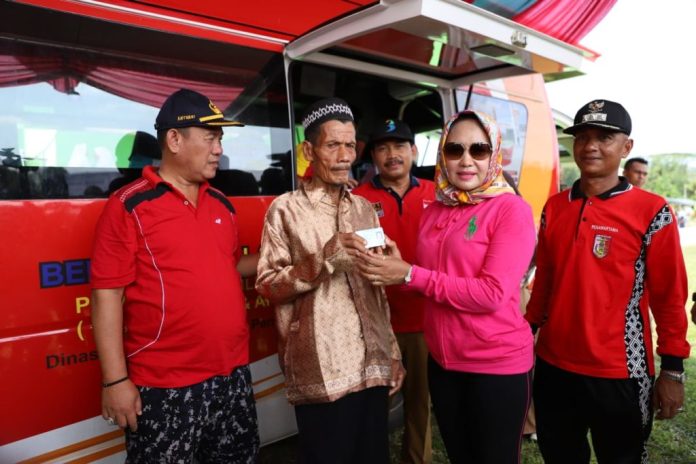 Setelah bersenam Bupati menyerahkan Bantuan Hibah Masjid, Bantuan anak yatim, dan Bantuan karang taruna. Ditempat yang sama Disdukcapil Tulang Bawang juga melakukan pelayanan perekaman data kependudukan, yang disambut antusias warga setempat.