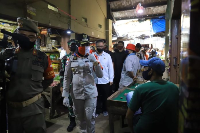 Apel dilanjutkan dengan mengunjungi pasar unit 2, di karenakan pasar adalah pusat perekonomian masyarakat, harus dijaga agar tidak terjadi penyebaran disini, semua pedagang diharapkan tertip mengikuti arahan dan anjuran pemerintah. (sdi/red)