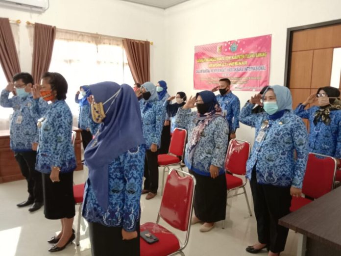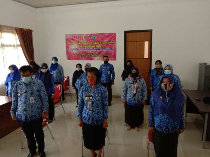 TULANG BAWANG - Dinas Dinas Pemberdayaan Perempuan dan Perlindungan Anak Kabupaten Tulang Bawang mengikuti Upacara Peringatan Hari Pahlawan Secara Virtual. Selasa (10/11/2020).