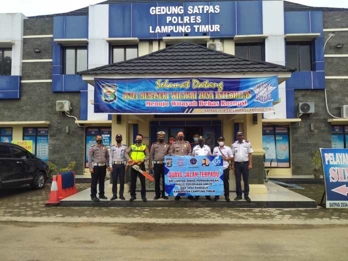 LAMPUNG TIMUR (DF) - Guna meminimalisir kecelakaan Lalulintas (Laka Lantas), Sat Lantas Polres Lampung Timur bersama Lima Pilar management keselamatan jalan melaksanakan kegiatan survei jalan terpadu, pada Rabu(24/02/2021).