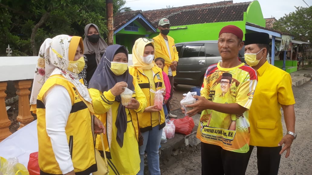 Tulang Bawang - Guna membantu masyarakat yang sedang melaksanakan Puasa di Bulan Suci Ramadhan,Ikatan Istri Partai Golongan Karya (IIPG) membagikan makanan ringan (Takjil) Diruas Jl Aspol kecamatan menggala Kabupaten Tulangbawang.