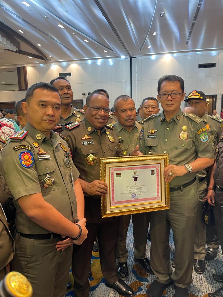 Pengharapan tersebut diserahkan secara langsung kepada Bupati oleh Wakil Menteri Dalam Negeri John Wempi Wetipo, S.H., M.H. yang didampingi Direktur Jenderal Bina kewilayahan Kemendagri Dr. Drs. Safrizal, ZA, M.Si usai pembukaan Rapat Koordinasi Nasional Satpol PP, Sekaligus memperingati HUT ke 73 POL PP dan HUT ke 61 Linmas.