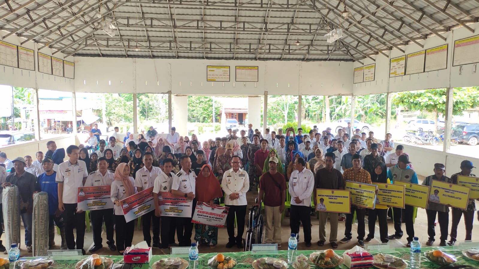 dari Dinas Sosial berupa Kursi Roda dan Alat Bantu Pendengaran, dinas PPKB berupa BKB Stunting dalam bentuk alat permainan edukatif balita dan anak anak dan bantuan 30 Ambal Sajadah dari Bagian Kesra Kabupaten Mesuji