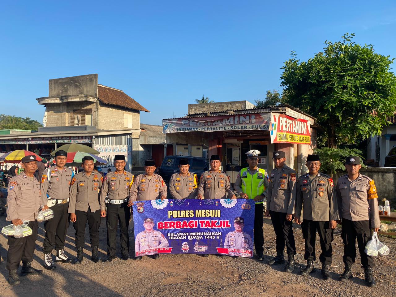 Mesuji,delikfokus - Di Bulan Suci Ramadhan kali ini, tidak henti hentinya Kapolres Mesuji melaksanakan Bhakti Sosial dengan membagikan takjil kepada pengguna jalan di beberapa tempat.