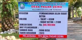 Diduga Ada Pengelembungan Anggaran Pembangunan Jalan Rabat Beton Desa Pagar Dewa